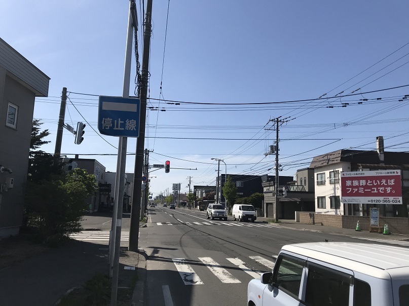 下手稲通り、自動車試験センター前信号機「明日風1」→ →札幌方面へ